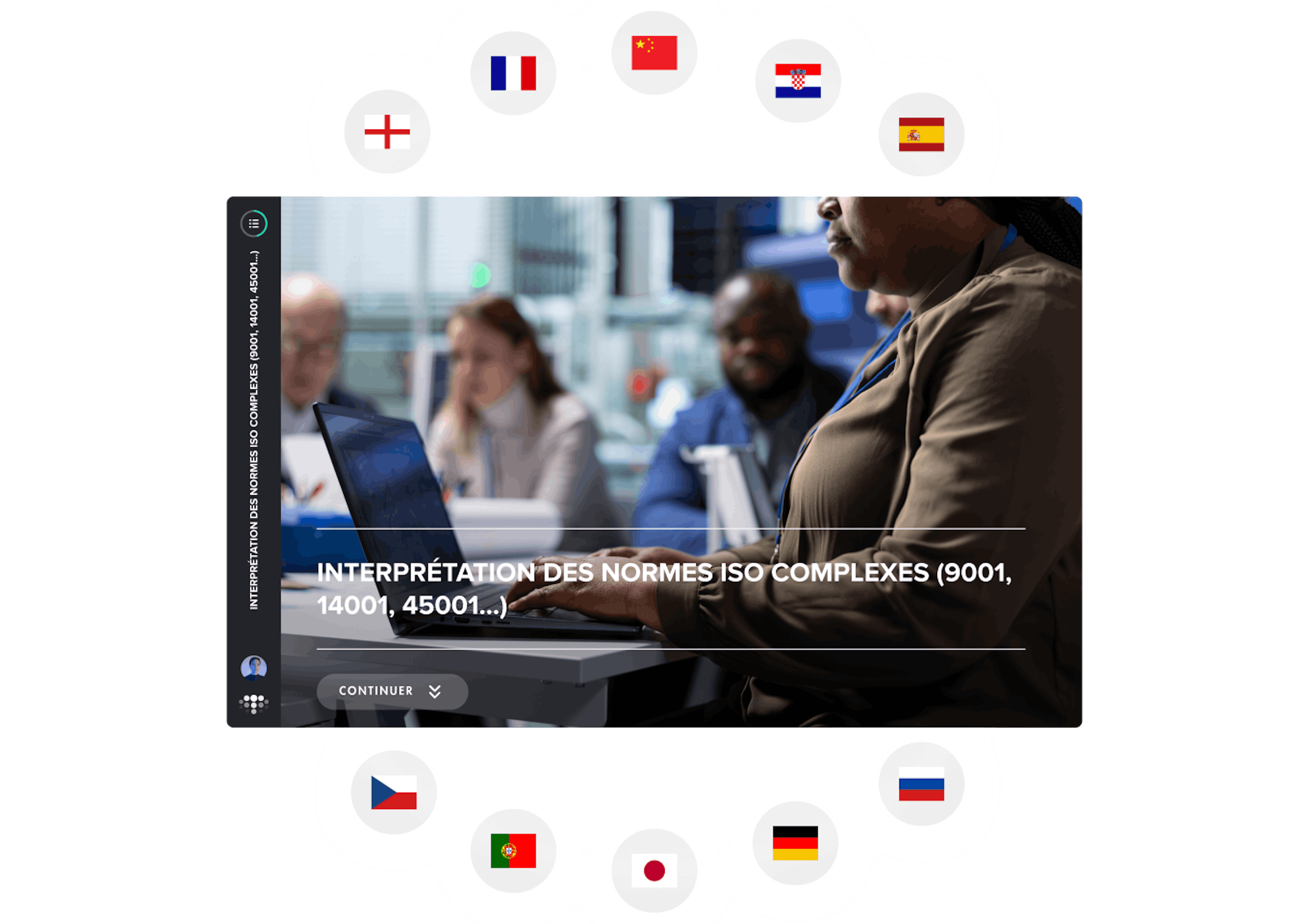 Centralisez toutes vos formations, diffusez-les dans le bon format et traduisez-les automatiquement pour un déploiement international fluide. Garantir un même niveau de compétences et de procédures est essentiel pour la qualité, la sécurité et la performance de votre organisation.