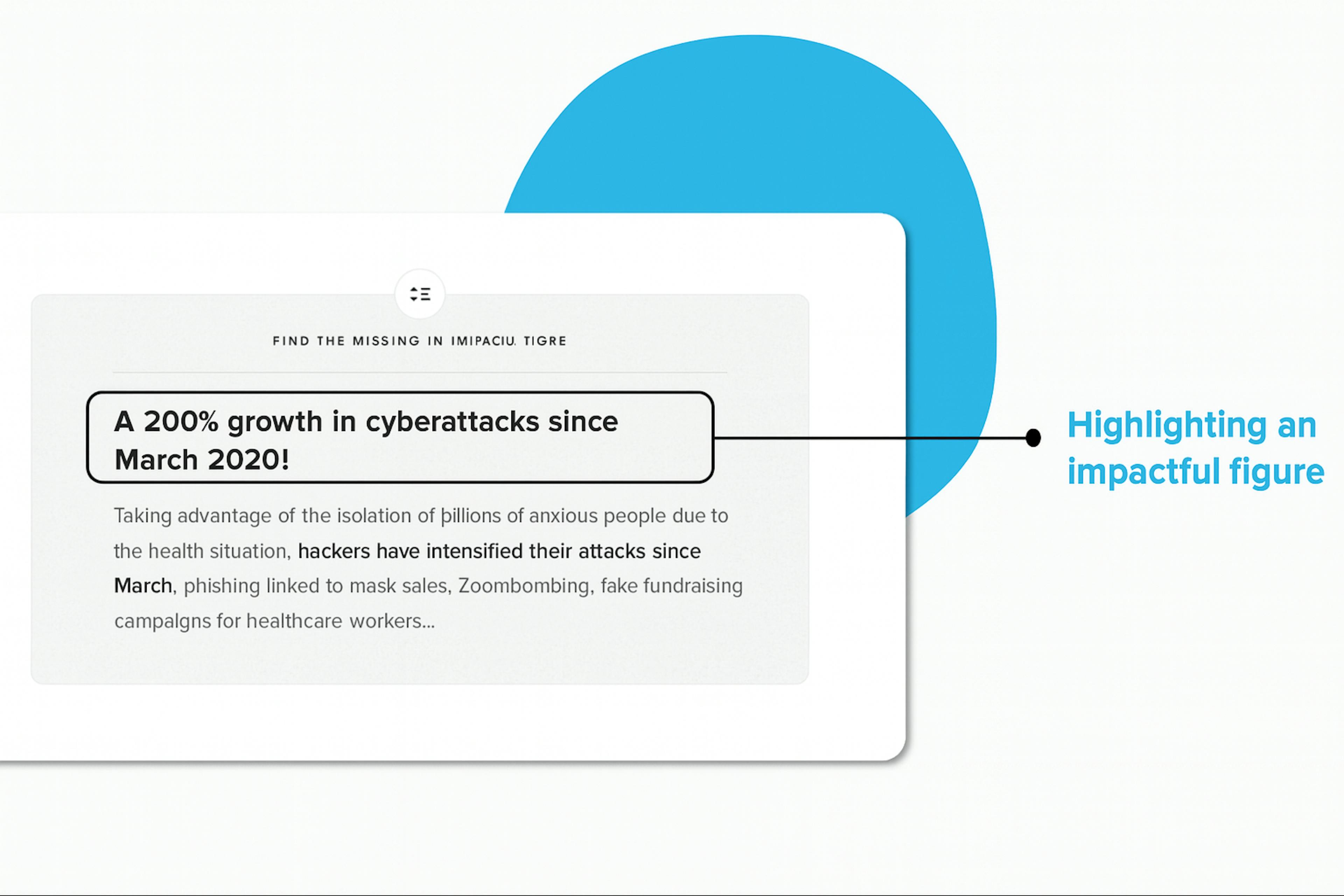 Quiz the learner in a playful way in a rapid-learning module to train them on cybersecurity rules.