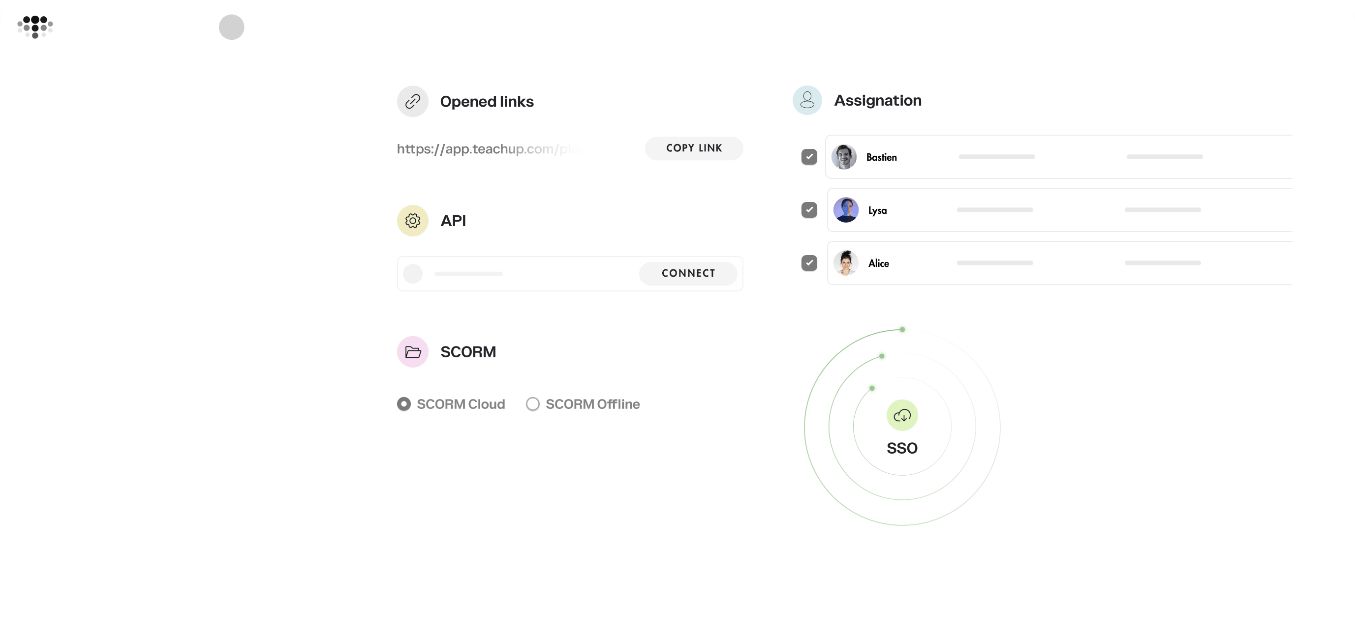 Teach Up offers multiple ways to deliver your content, all designed to fit your workflows, technical environment, and audience. Whether you need step-by-step guidance, instant wide reach, or to enrich your LMS, you’re covered.