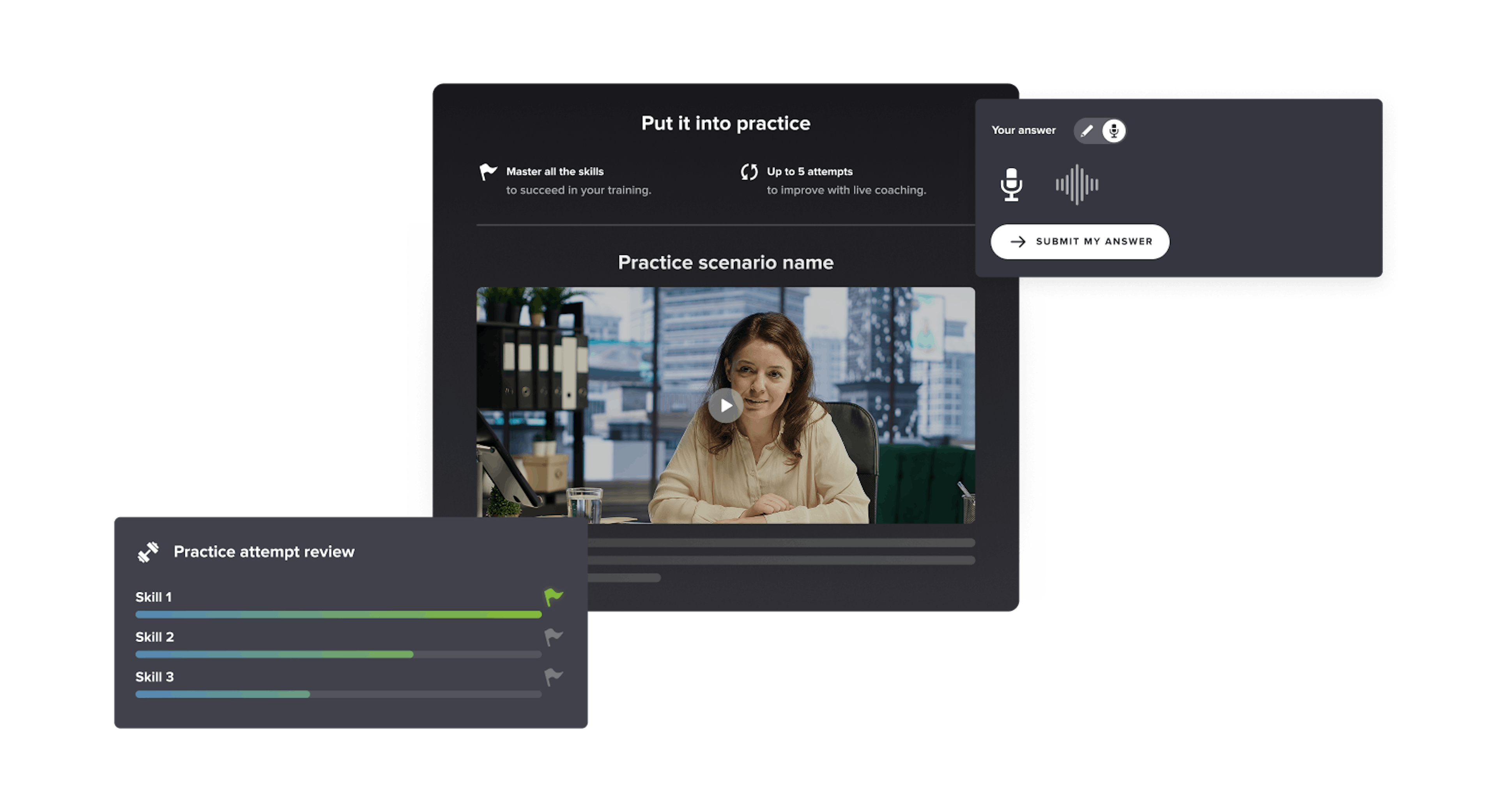 Thanks to the AI Assistant, you create immersive practice sessions that foster hands-on drills and accelerate each learner’s progress.