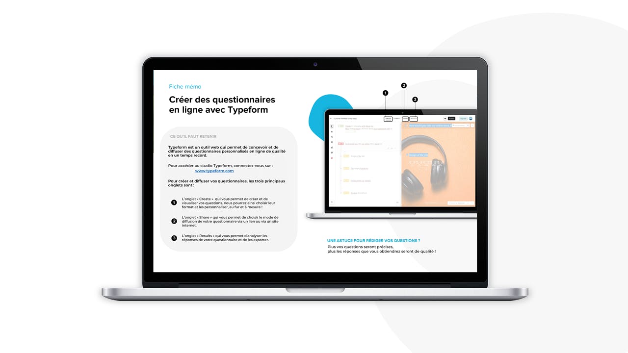Ajoutez facilement un mémo au format PDF à la fin de votre formation que les participants vont pouvoir télécharger et conserver. Ce document permet de centraliser les messages clés de la formation à retenir ou les principales fonctionnalités et usages de l’outil.
