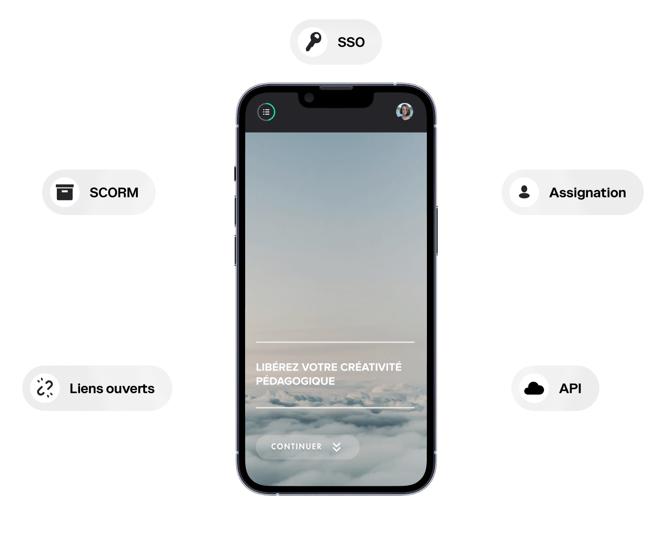 - Diffusion SCORM, web app ou intégration API LMS pour s’insérer dans vos écosystèmes existants.
