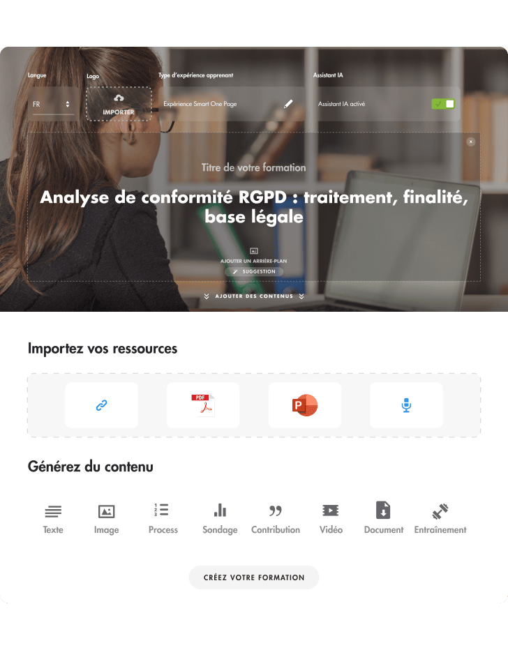 Transformez vos documents réglementaires, procédures et guides internes en formations interactives faciles à déployer.