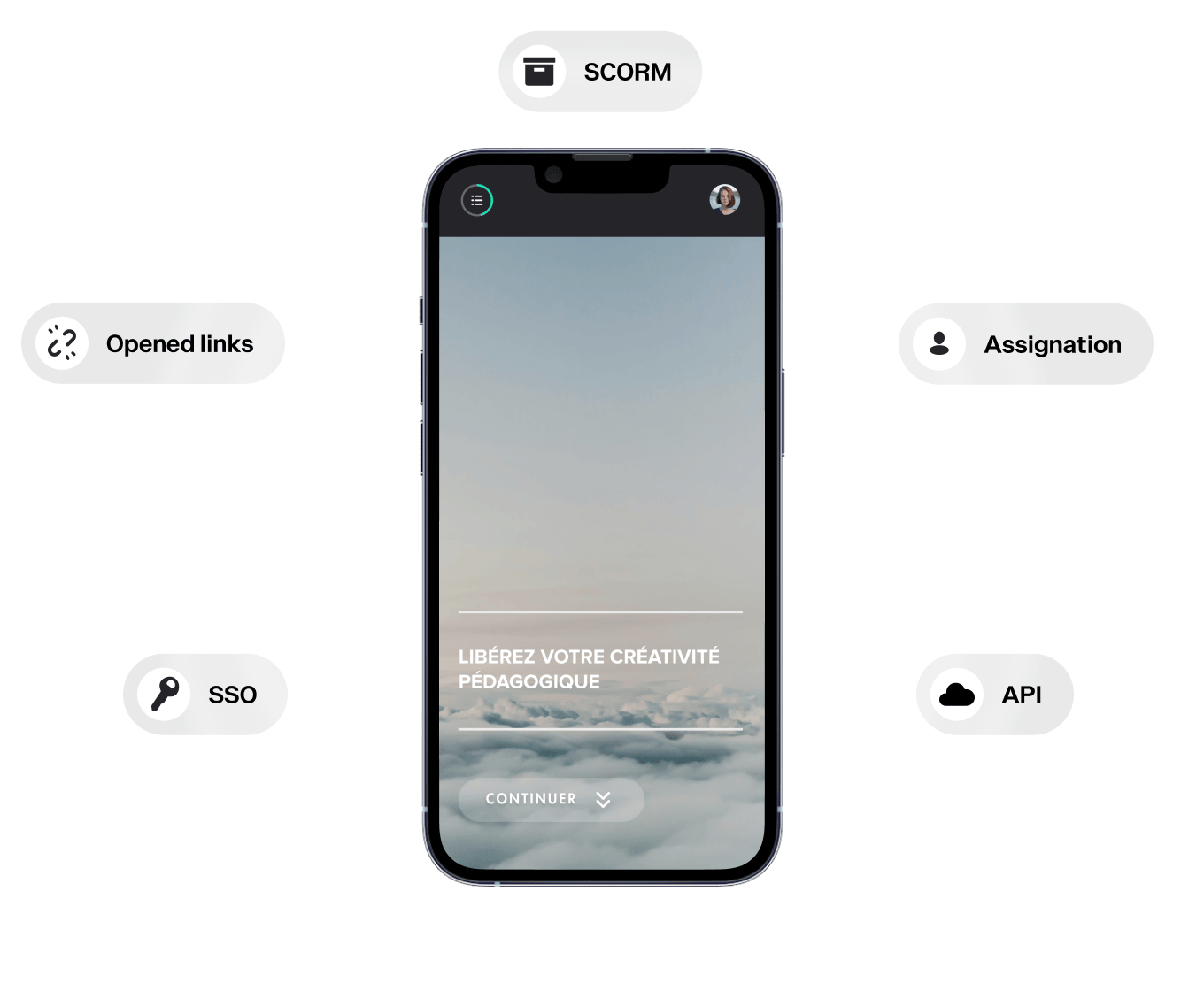 - Native integrations: API, SSO, SCORM export…