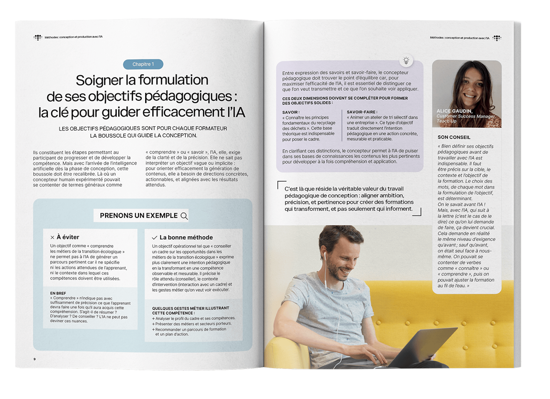 L’Intelligence Artificielle transforme en profondeur la manière de concevoir et de produire des formations. De la clarification des objectifs pédagogiques à la structuration des contenus essentiels, l’IA devient un véritable copilote de l’ingénierie pédagogique. Elle permet d’imaginer des déroulés plus efficaces, tout en impliquant un changement de posture : travailler avec l’IA suppose de repenser ses méthodes et son rôle de concepteur.
